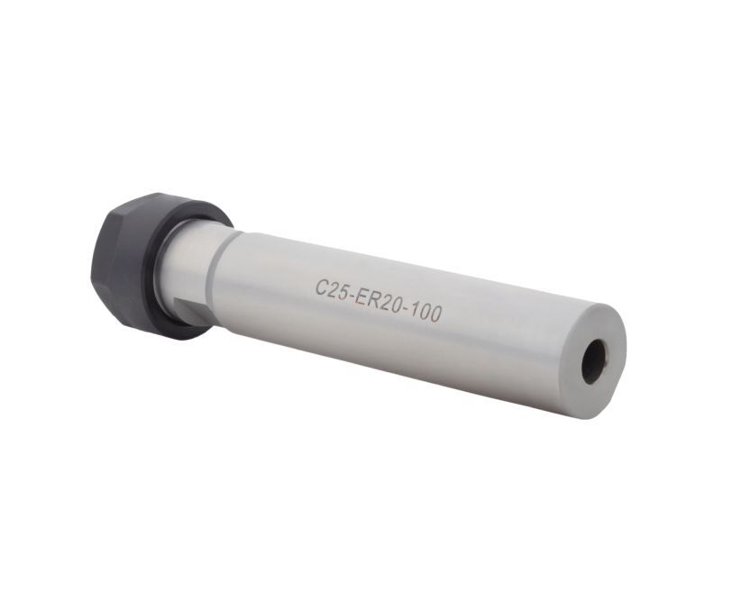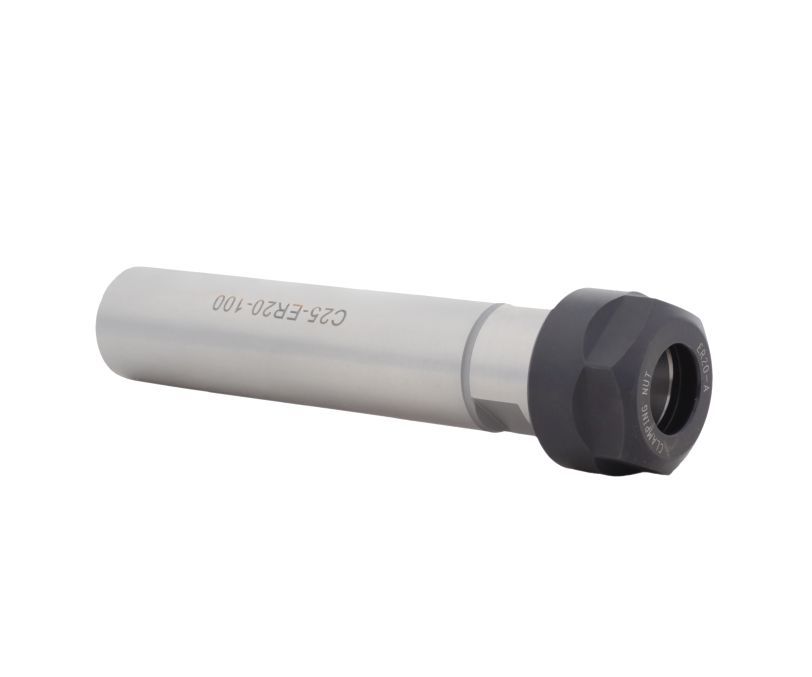 Фрезерный патрон C25-ER20-100 (DIN 6535 HA / ISO 3338) используется в условиях большого вылета инструмента или ограниченного доступа к зоне резания. Цилиндрический хвостовик оправки фиксируется в цанговом зажиме большего размера или патроне Weldon (при наличии специальной лыски на хвостовике). Установка режущего инструмента в корпус патрона осуществляется при помощи зажимной цанги ER20 (DIN 6499) и гайки типа A. В зависимости от размера отверстия цанги в патрон устанавливается инструмент с цилиндрическим хвостовиком диаметром от 1 до 13 мм. Длина хвостовика патрона составляет 100 мм.