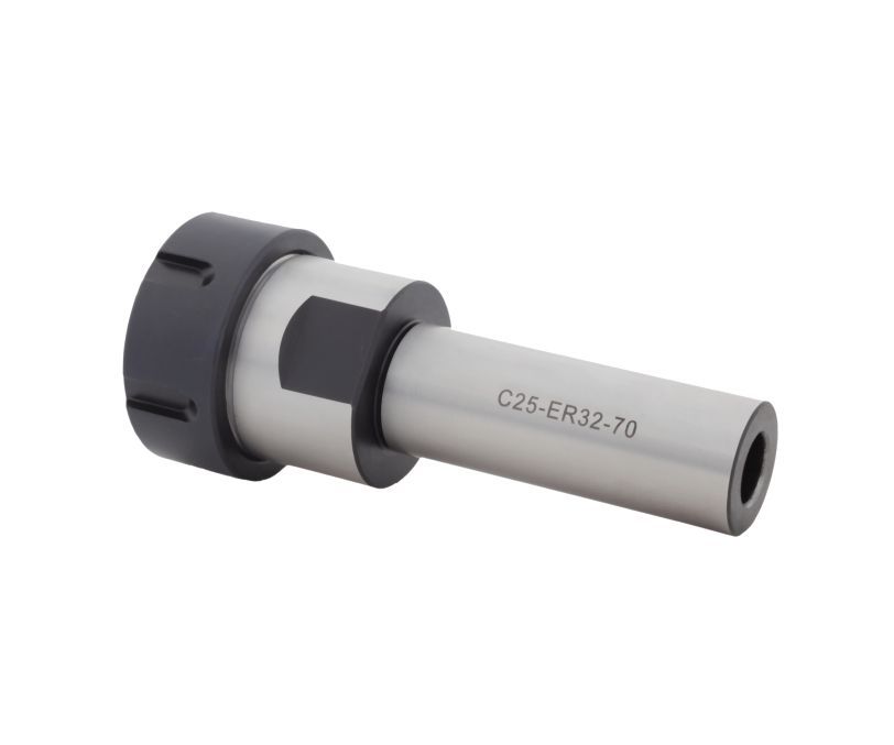 Фрезерный патрон C25-ER32-150 (DIN 6535 HA / ISO 3338) используется в условиях большого вылета инструмента или ограниченного доступа к зоне резания. Цилиндрический хвостовик оправки фиксируется в цанговом зажиме большего размера или патроне Weldon (при наличии специальной лыски на хвостовике). Установка режущего инструмента в корпус патрона осуществляется при помощи зажимной цанги ER32 (DIN 6499) и гайки типа UM. В зависимости от размера отверстия цанги в патрон устанавливается инструмент с цилиндрическим хвостовиком диаметром от 2 до 20 мм. Длина хвостовика патрона составляет 150 мм.