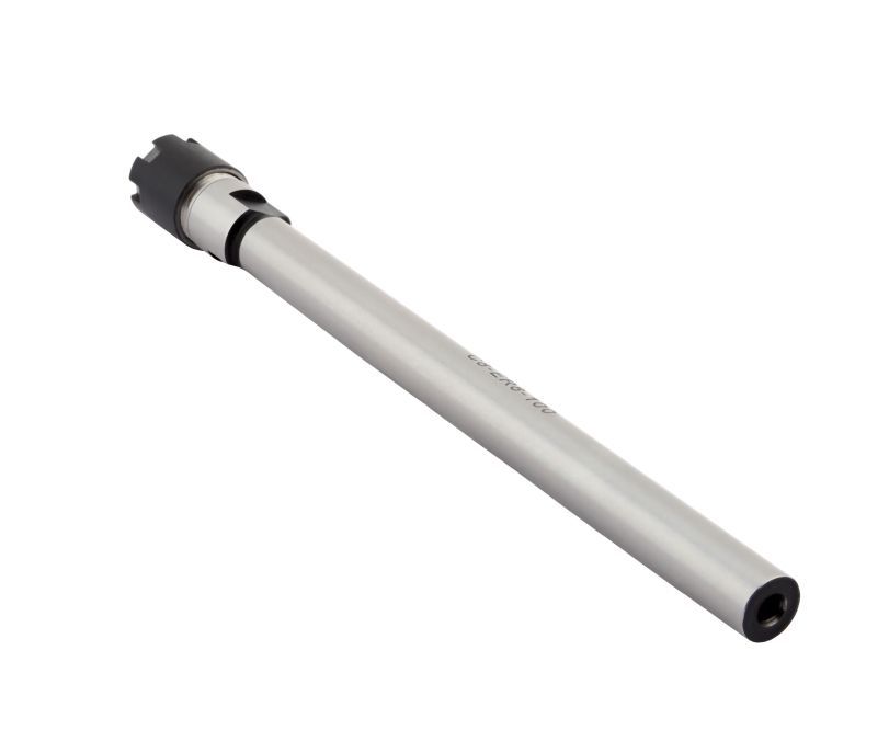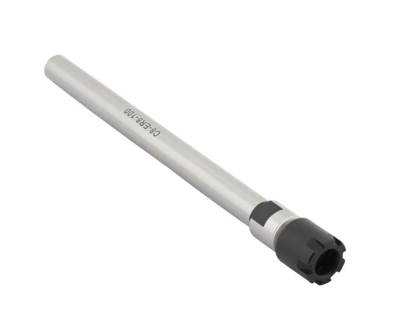 Фрезерный патрон C8-ER8M-100 (DIN 6535 HA / ISO 3338) используется в условиях большого вылета инструмента или ограниченного доступа к зоне резания. Цилиндрический хвостовик оправки фиксируется в цанговом зажиме большего размера или патроне Weldon (при наличии специальной лыски на хвостовике). Установка режущего инструмента в корпус патрона осуществляется при помощи зажимной цанги ER8 (DIN 6499) и гайки типа M. В зависимости от размера отверстия цанги в патрон устанавливается инструмент с цилиндрическим хвостовиком диаметром от 1 до 5 мм. Длина хвостовика патрона составляет 100 мм.