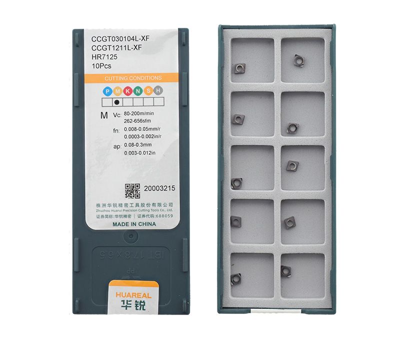 Твердосплавная сменная пластина CCGT030104L-XF-HR7125 применяется для чистовой обработки заготовок из нержавеющей стали.