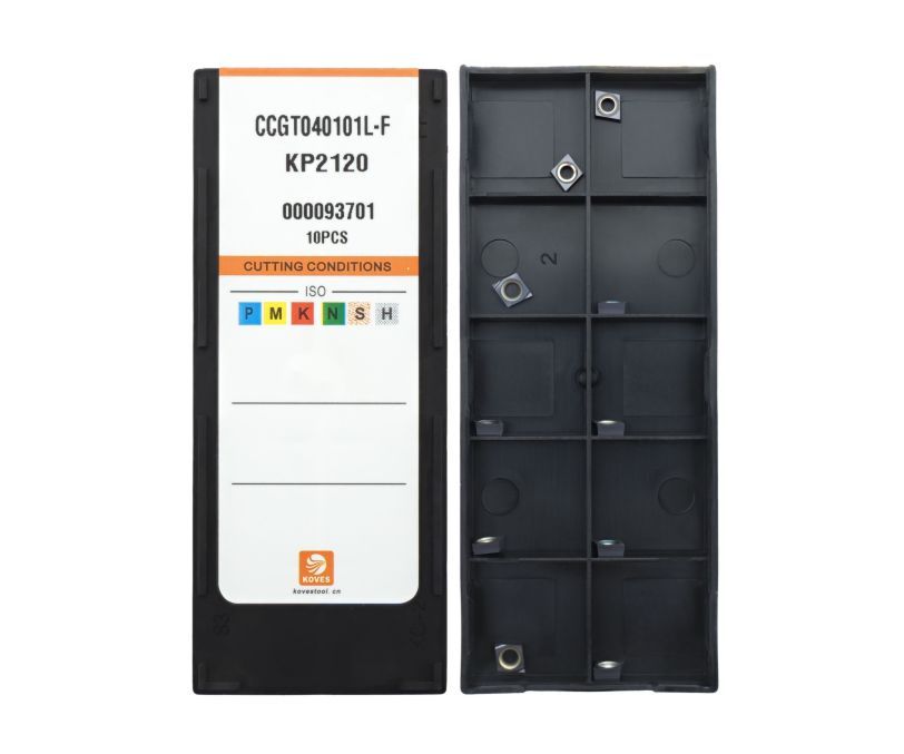 Твердосплавная сменная пластина CCGT040101L-F-KP2120 бренда Koves применяется для чистовой обработки заготовок из нержавеющей стали и жаропрочных сплавов.