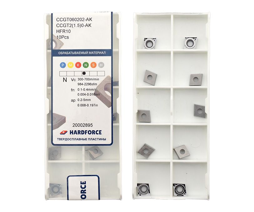 Твердосплавная сменная пластина CCGT060202-AK-HFR10 применяется для чистовой обработки заготовок из алюминия и сплавов цветных металлов.