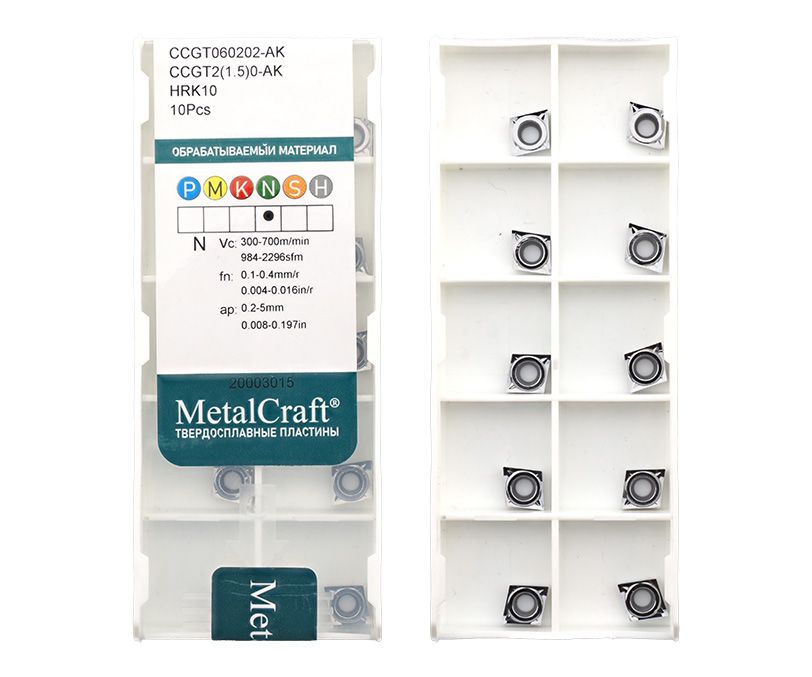 Твердосплавная сменная пластина CCGT060202-AK-HRK10 бренда MetalCraft применяется для чистовой обработки заготовок из алюминия и сплавов цветных металлов.