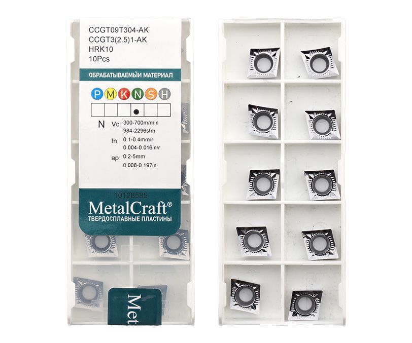 Твердосплавная сменная пластина CCGT09T304-AK-HRK10 бренда MetalCraft применяется для получистовой обработки заготовок из алюминия и сплавов цветных металлов.