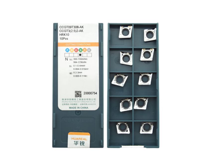Твердосплавная сменная пластина CCGT09T308-AK-HRK10 бренда Huareal применяется для получистовой обработки заготовок из алюминия и сплавов цветных металлов.