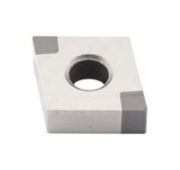 Сменная пластина CCGW060208-F-BT6000 используется для токарной получистовой обработки закаленной стали. Конструктивно представляет собой основу из твердого сплава, на одной стороне которой установлены две напайки из сверхтвердого материала PCBN с защитным покрытием. Форма пластины - C (ромб 80°). Позитивная геометрия, задний угол N (0°). Радиус при вершине 0.8.