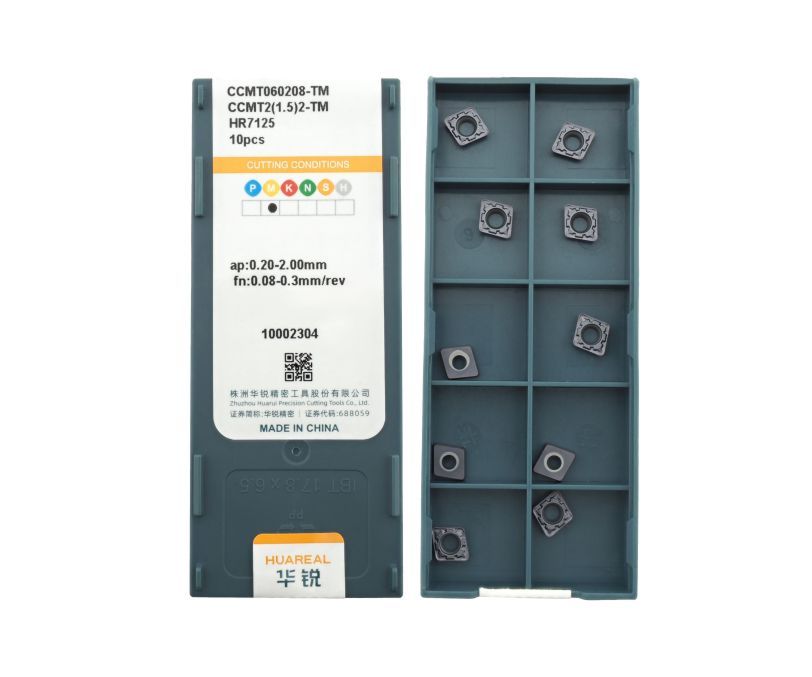 Твердосплавная сменная пластина CCMT060208-TM-HR7125 бренда Huareal применяется для получистовой обработки заготовок из нержавеющей стали.