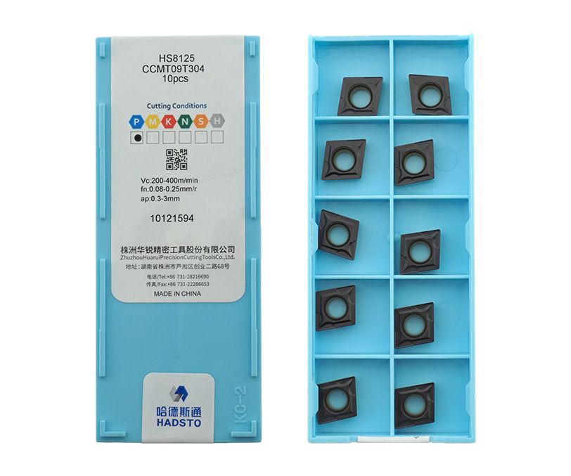 Твердосплавная сменная пластина CCMT09T304-HS8125 бренда HADSTO применяется для получистовой обработки заготовок из стали.