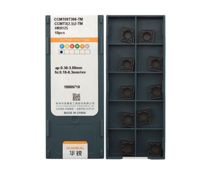 Твердосплавная сменная пластина CCMT09T308-TM-HR8125 бренда Huareal применяется для получистовой обработки заготовок из стали.
