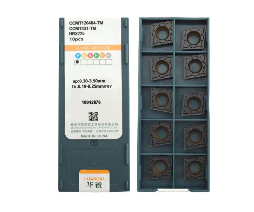 Твердосплавная сменная пластина CCMT120404-TM-HR8225 бренда Huareal применяется для получистовой обработки заготовок из стали.