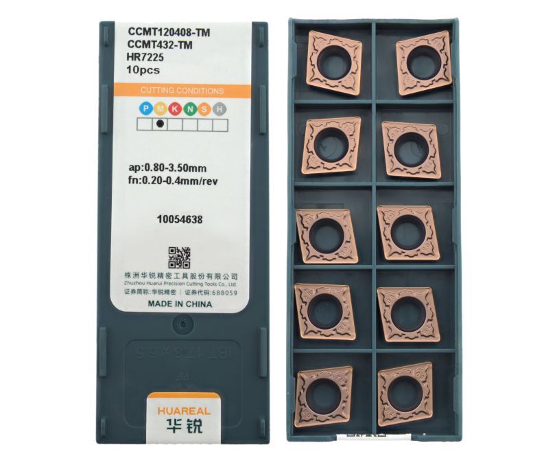 Твердосплавная сменная пластина CCMT120408-TM-HR7225 бренда Huareal применяется для получистовой обработки заготовок из нержавеющей стали.