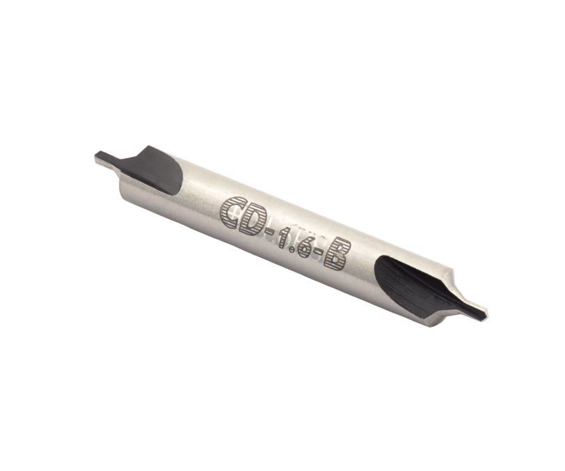 Двухстороннее сверло CD-1,6-B (DIN333, ГОСТ 14952) используется для создания высокоточных центровых отверстий типа B в заготовках из стали, нержавеющей стали, чугуна. Центровочный угол 60⁰, предохранительный конус 120°. Инструмент изготовлен из высококачественной быстрорежущей стали HSS-6542. Диаметр 1,6 мм, длина направляющей 2 мм, общая длина сверла 45 мм.