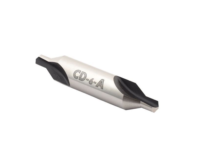 Двухстороннее сверло CD-6-A (DIN333, ГОСТ 14952) используется для создания высокоточных центровых отверстий типа А в заготовках из стали, нержавеющей стали, чугуна. Центровочный угол 60⁰, исполнение без предохранительного конуса. Инструмент изготовлен из высококачественной быстрорежущей стали HSS-6542. Диаметр 6 мм, длина направляющей 9,2 мм, общая длина сверла 74 мм.