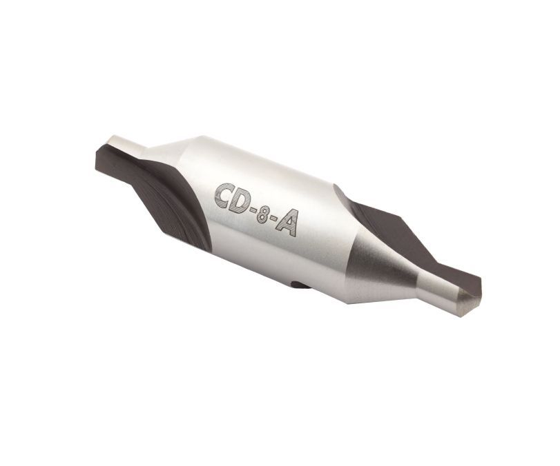 Двухстороннее сверло CD-8-A (DIN333, ГОСТ 14952) используется для создания высокоточных центровых отверстий типа А в заготовках из стали, нержавеющей стали, чугуна. Центровочный угол 60⁰, исполнение без предохранительного конуса. Инструмент изготовлен из высококачественной быстрорежущей стали HSS-6542. Диаметр 8 мм, длина направляющей 11,5 мм, общая длина сверла 83 мм.