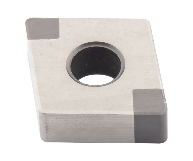 Сменная пластина CNGA120408-ZH-BT6000 используется для токарной получистовой обработки закаленной стали. Конструктивно представляет собой основу из твердого сплава, на одной стороне которой установлены две напайки из сверхтвердого материала PCBN с защитным покрытием. Форма пластины - C (ромб 80°). Негативная геометрия, задний угол N (0°). Радиус при вершине 0.8.