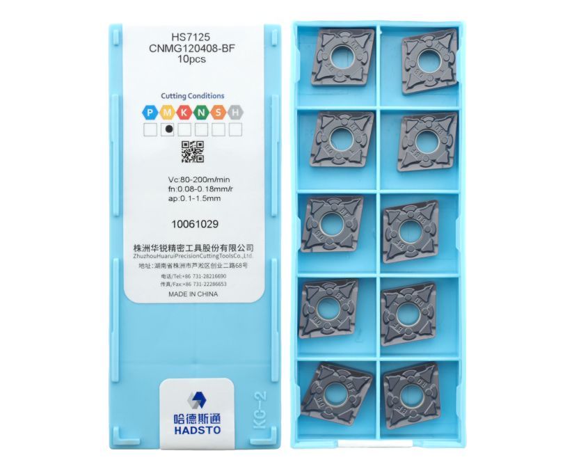 Твердосплавная сменная пластина CNMG120408-BF-HS7125 бренда HADSTO применяется для чистовой обработки заготовок из нержавеющей стали.
