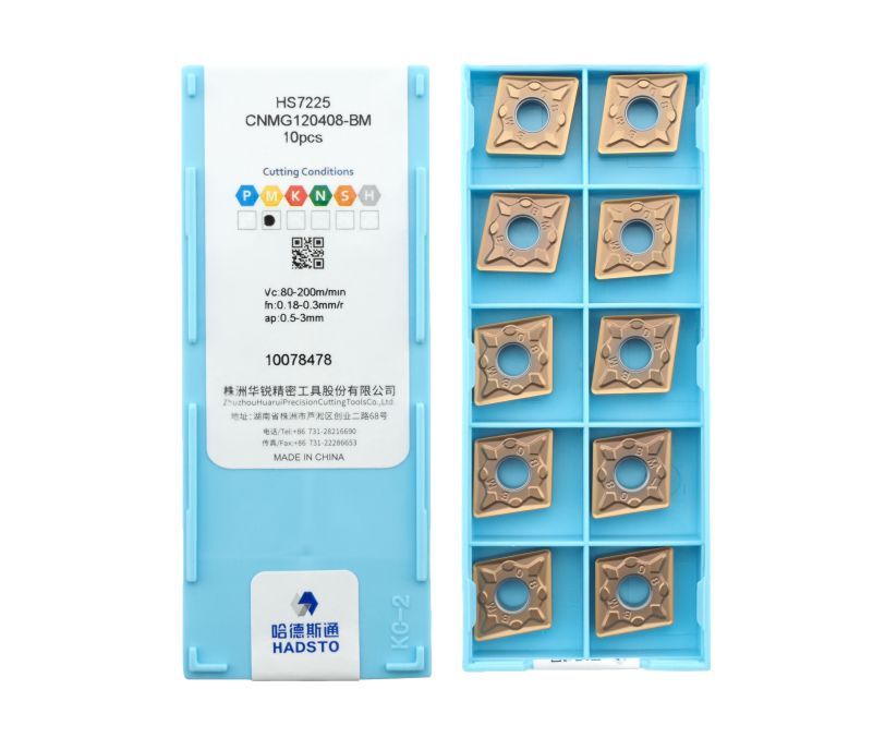 Твердосплавная сменная пластина CNMG120408-BM-HS7225 бренда HADSTO применяется для получистовой обработки заготовок из нержавеющей стали.