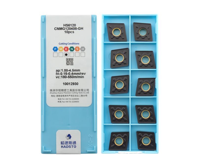 Твердосплавная сменная пластина CNMG120408-GH-HS6120 бренда HADSTO применяется для чистовой обработки заготовок из чугуна.