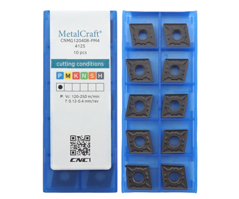 Твердосплавная сменная пластина CNMG120408-PM4-4125 бренда MetalCraft применяется для получистовой обработки заготовок из стали.