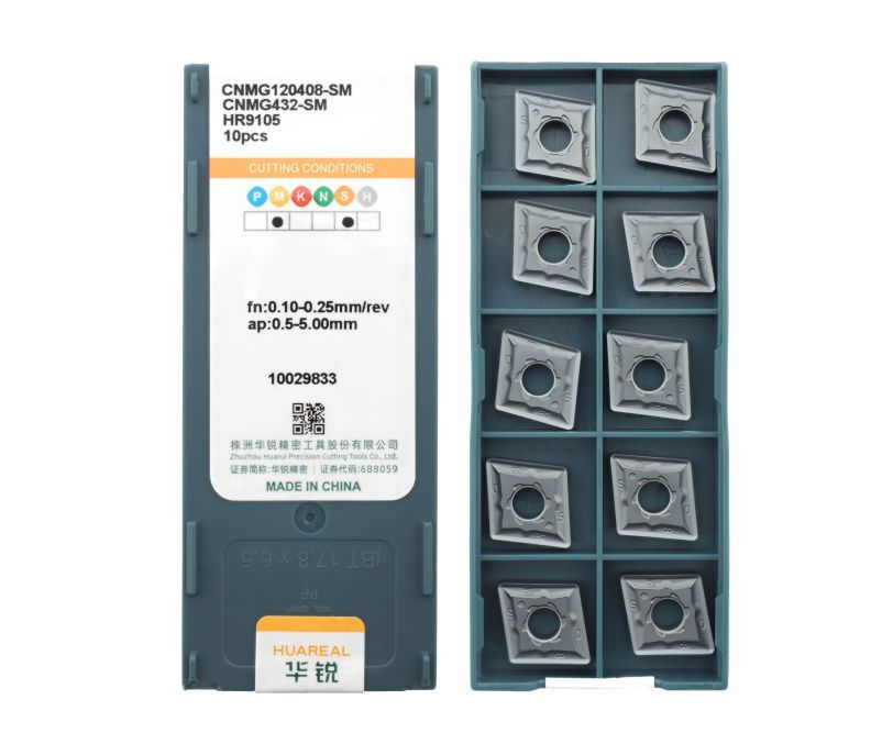 Твердосплавная сменная пластина CNMG120408-SM-HR9105 бренда Huareal применяется для получистовой обработки заготовок из титановых и жаропрочных сплавов.