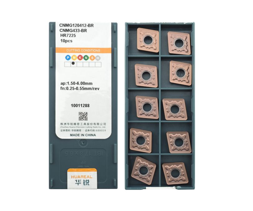 Твердосплавная сменная пластина CNMG120412-BR-HFR7225 бренда Huareal применяется для черновой обработки заготовок из нержавеющей стали.