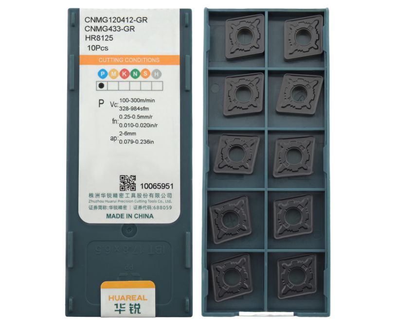Твердосплавная сменная пластина CNMG120412-GR-HR8125 бренда Huareal применяется для черновой обработки заготовок из стали.