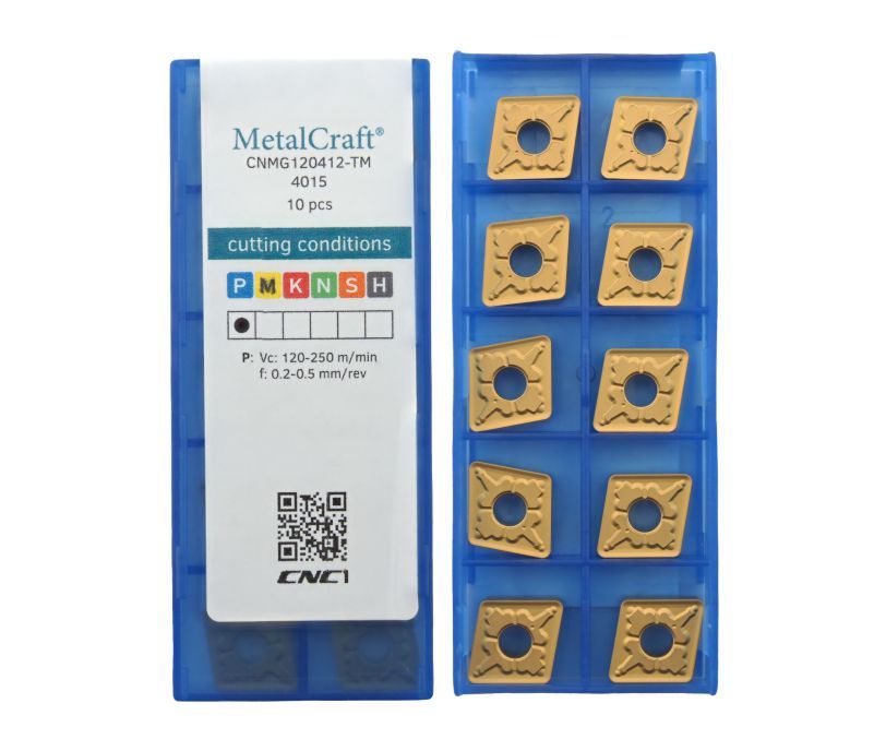 Твердосплавная сменная пластина CNMG120412-TM-4015 бренда MetalCraft применяется для получистовой обработки заготовок из стали.