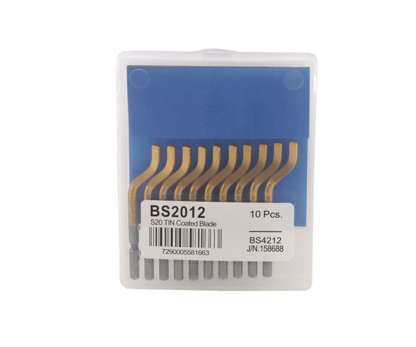 Cменное лезвие DB-BS2012 (тип S) используется для обработки заготовок из нержавеющей стали. Инструмент изготовлен из быстрорежущей стали с закалкой до твердости 62-64 HRC. Для увеличения износостойкости и срока службы инструмента используется защитное покрытие TiN. Товар отгружается упаковками по 10 шт.