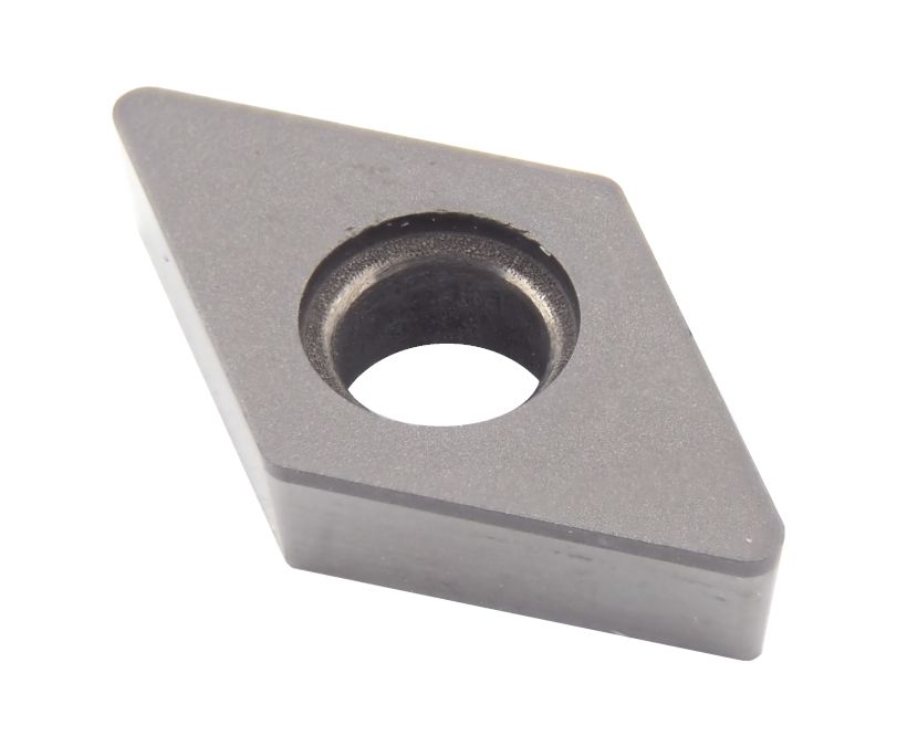 Сменная пластина DCGW11T308-F-BT3100 используется для токарной получистовой обработки чугуна. Конструктивно представляет собой основу из твердого сплава, на одной стороне которой установлены две напайки из сверхтвердого материала PCBN с защитным покрытием. Форма пластины - D (ромб 55°). Позитивная геометрия, задний угол N (0°). Радиус при вершине 0.8.