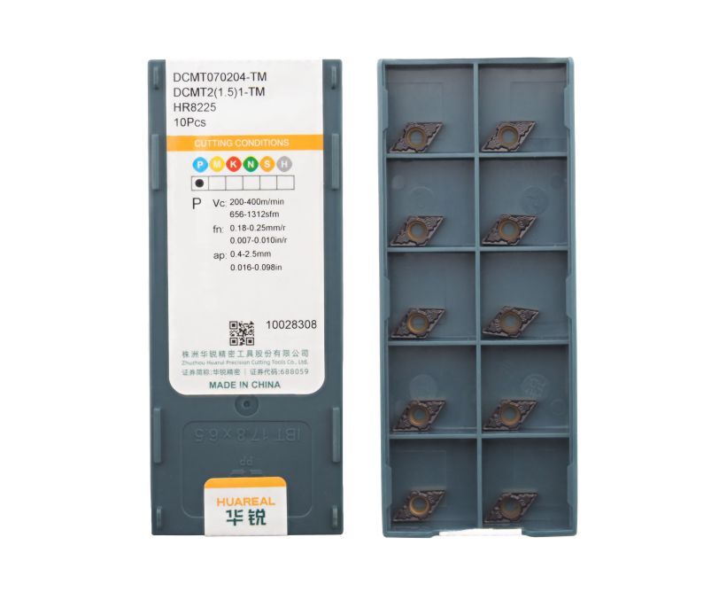 Твердосплавная сменная пластина DCMT070204-TM-HR8225 бренда Huareal применяется для получистовой обработки заготовок из стали.
