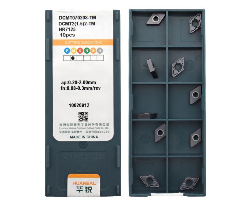 Твердосплавная сменная пластина DCMT070208-TM-HR7125 бренда Huareal применяется для получистовой обработки заготовок из нержавеющей стали.