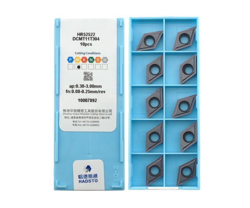 Твердосплавная сменная пластина DCMT11T304-HR52522 бренда HADSTO применяется для получистовой обработки заготовок из стали, нержавеющей стали и чугуна.