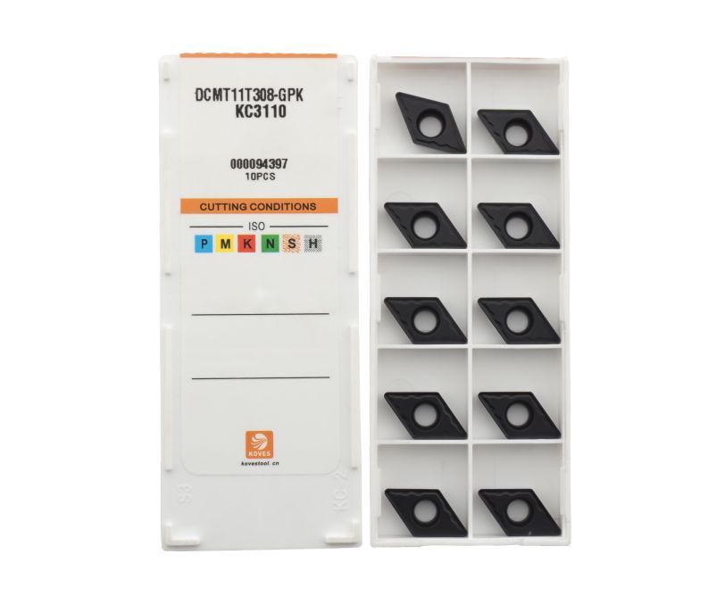 Твердосплавная сменная пластина DCMT11T308-GPK-KC3110 бренда Koves применяется для получистовой обработки заготовок из стали и чугуна.