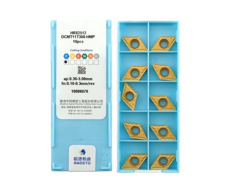 Твердосплавная сменная пластина DCMT11T308-HMP-HR82512 бренда HADSTO применяется для получистовой обработки заготовок из стали.