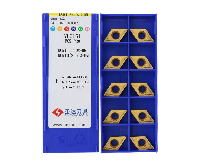 Твердосплавная сменная пластина DCMT11T308-HM-YBC151 бренда Sant применяется для получистовой обработки заготовок из стали.