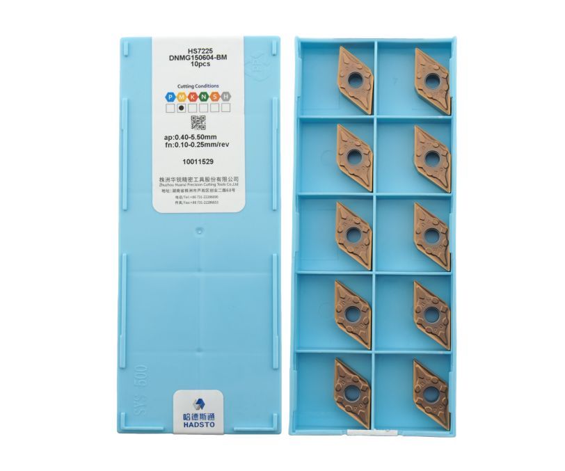 Твердосплавная сменная пластина DNMG150604-BM-HS7225 бренда HADSTO применяется для получистовой обработки заготовок из нержавеющей стали.