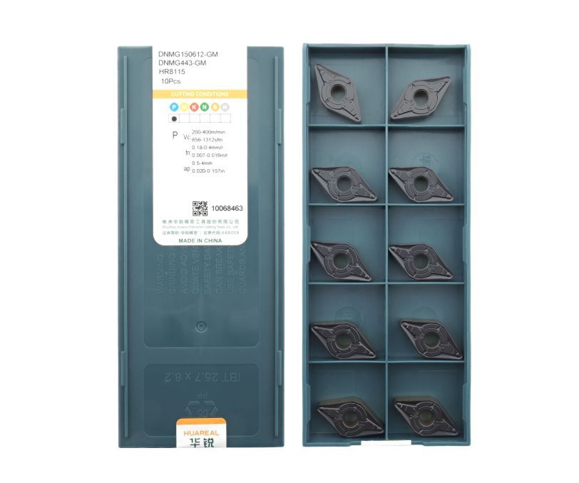 Твердосплавная сменная пластина DNMG150612-GM-HR8115 бренда Huareal применяется для получистовой обработки заготовок из стали.