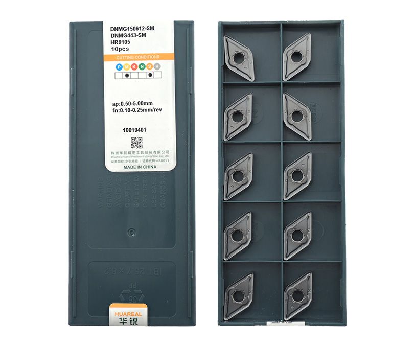 Твердосплавная сменная пластина DNMG150612-SM-HR9105 бренда Huareal применяется для получистовой обработки заготовок из титановых и жаропрочных сплавов.