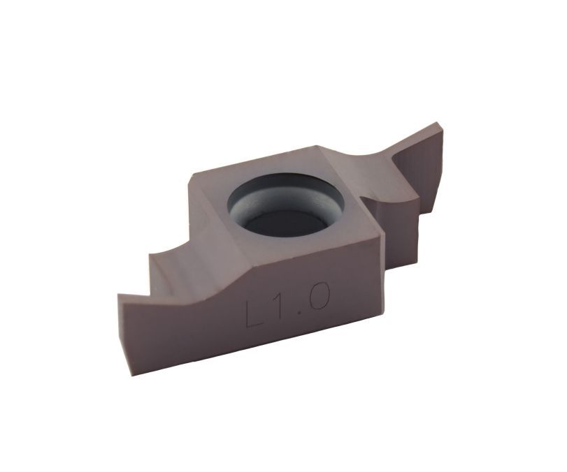 Твердосплавная сменная пластина GEL100-E (левое исполнение, тип E) используется для обработки канавок. Тип обрабатываемого материала: сталь, нержавеющая сталь, чугун, цветные металлы. Для увеличения износостойкости и срока службы пластины применяется защитное покрытие PM125. Ширина пластины 1.0 мм. Радиус при вершине 0.05 мм.