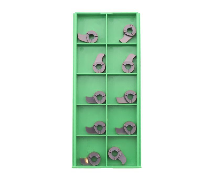 Пластина GK18R500-PM125 для обработки канавок оснащена системой винтового крепления пластины с торца, обеспечивающей тангенциальное крепление. Радиус при вершине 0.2 мм.
