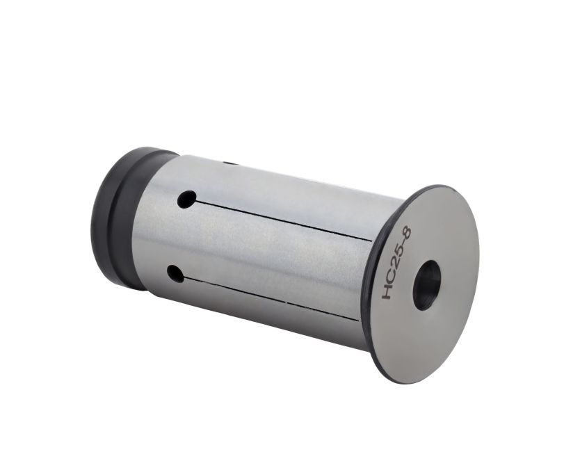 Цанга HC25-8 для гидропластовых патронов, негерметичные, со сквозным отверстием для СОЖ. Предназначены для зажима инструмента с цилиндрическим хвостовиком диаметром 18 мм. Среднее отклонение концентричности (биение) составляет ≤0,003 мм (высокоточные).