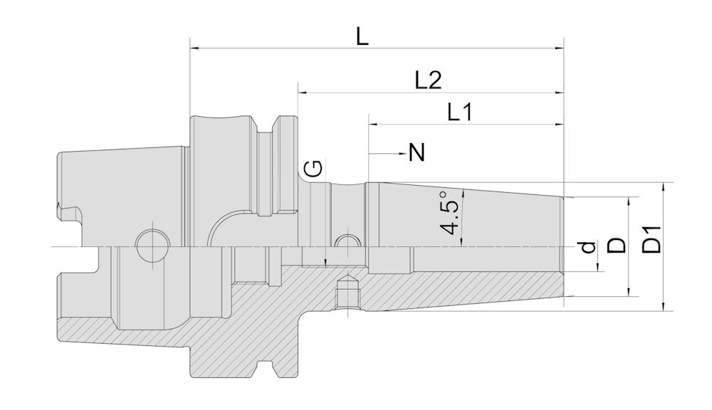 Термозажимные патроны HSK63A-SF16-160 обеспечивают надежное крепление осевого инструмента с цилиндрическим хвостовиком благодаря методам нагрева и охлаждения. Они обеспечивают высокую точность работы с допуском до 0,003 мм и могут быть сбалансированы для частоты вращения до 25,000 об. /мин. Инструментальная часть оправки имеет угол 4,5°. Патроны с конусом 1:10 HSK (стандарты DIN 69893, ISO 12164/1) применяются на фрезерных и сверлильных станках, как с ЧПУ, так и с ручной сменой инструмента.