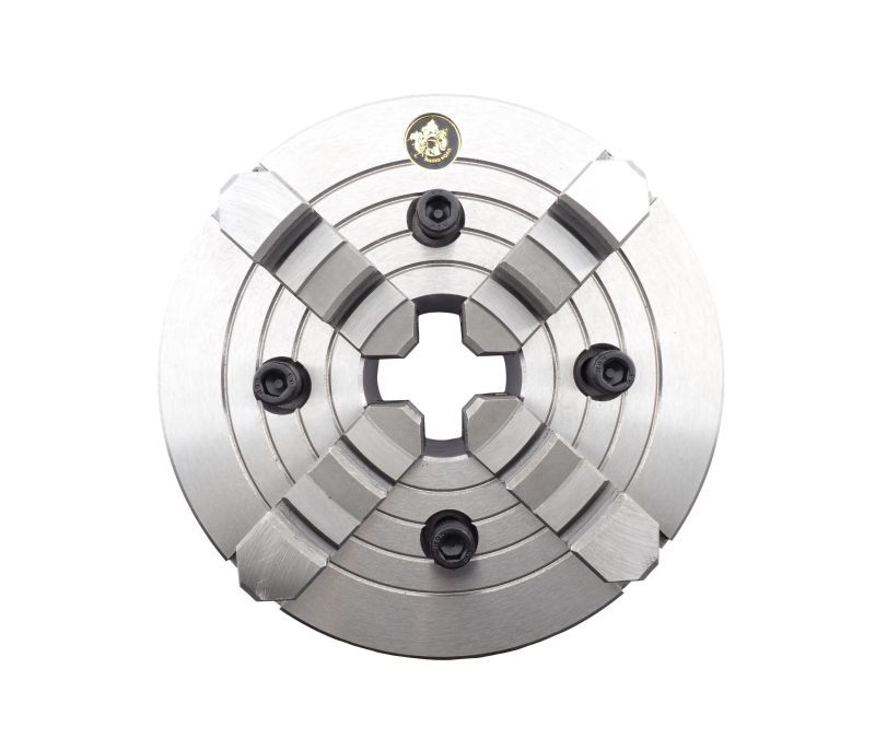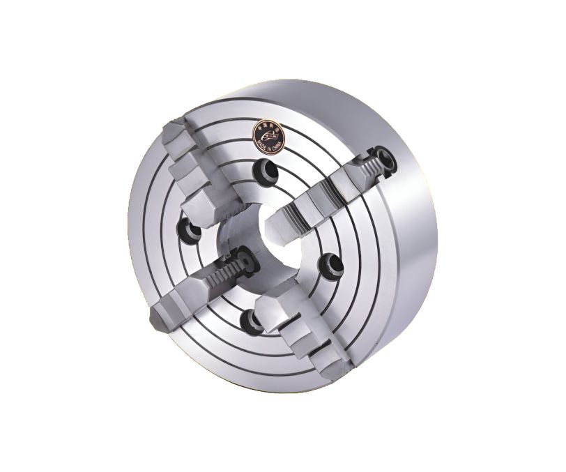 Токарный патрон K72-200 диаметром 200 мм / 8" используется для фиксакции заготовки на шпинделе станка. Максимальная скорость вращения патрона 2000 об/мин. Механизм с независимым перемещением четырех цельных кулачков обеспечивает надежную фиксацию деталей прямоугольной, квадратной или ассиметричной формы. Тип посадки патрона - цилиндрический через переходной фланец (ГОСТ 24351, DIN 6350). Корпус патрона изготовлен из серого чугуна (HT300). Кулачкииз легированной стали (20CrMnTi) устанавливаются как в прямом так и в обратном положении, что увеличивает диапазон габаритов зажимаемых деталей.