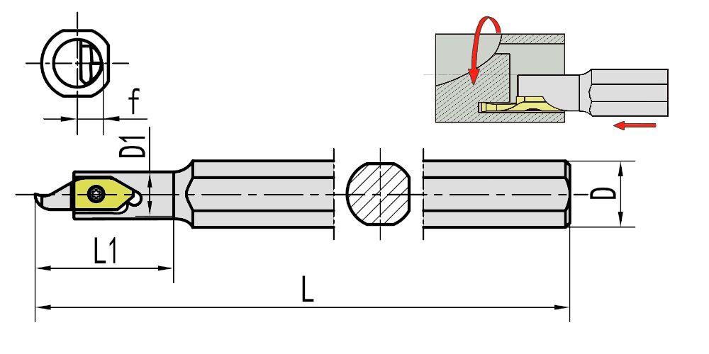 Резец токарный KSPDR0012H06A применяется для обработки наружных канавок на торце заготовки.