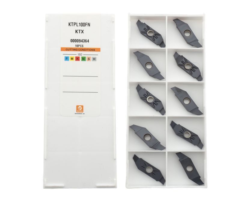 Твердосплавная сменная пластина KTPL100FN-KTX (левое исполнение) используется для обработки канавок. Тип обрабатываемого материала: сталь. Для увеличения износостойкости и срока службы пластины применяется защитное покрытие KTX. Ширина пластины 1 мм. Радиус при вершине 0.05 мм.