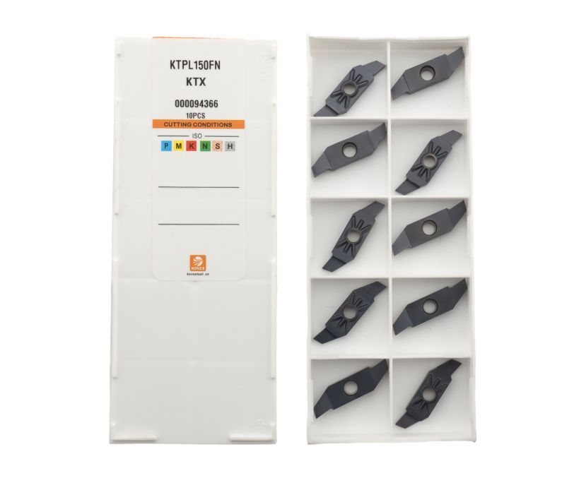 Твердосплавная сменная пластина KTPL150FN-KTX (левое исполнение) используется для обработки канавок. Тип обрабатываемого материала: сталь. Для увеличения износостойкости и срока службы пластины применяется защитное покрытие KTX. Ширина пластины 1.5 мм. Радиус при вершине 0.05 мм.