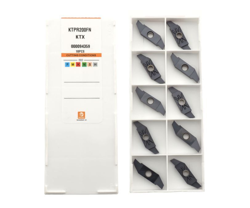Твердосплавная сменная пластина KTPR200FN-KTX (правое исполнение) используется для обработки канавок. Тип обрабатываемого материала: сталь. Для увеличения износостойкости и срока службы пластины применяется защитное покрытие KTX. Ширина пластины 2 мм. Радиус при вершине 0.05 мм.