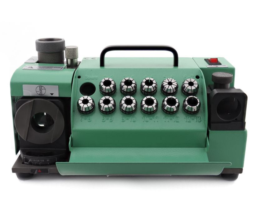 Станок LG-13Z используется для заточки левых спиральных сверл диаметром от 3 до 13 мм, изготовленных из быстрорежущей стали HSS и твердых сплавов. Конструктивно представляет собой корпус с установочными отверстиями, внутри которого расположены электродвигатель и шлифовальный круг*. В нижней части станка расположен контейнер для частиц абразива и металлической стружки.