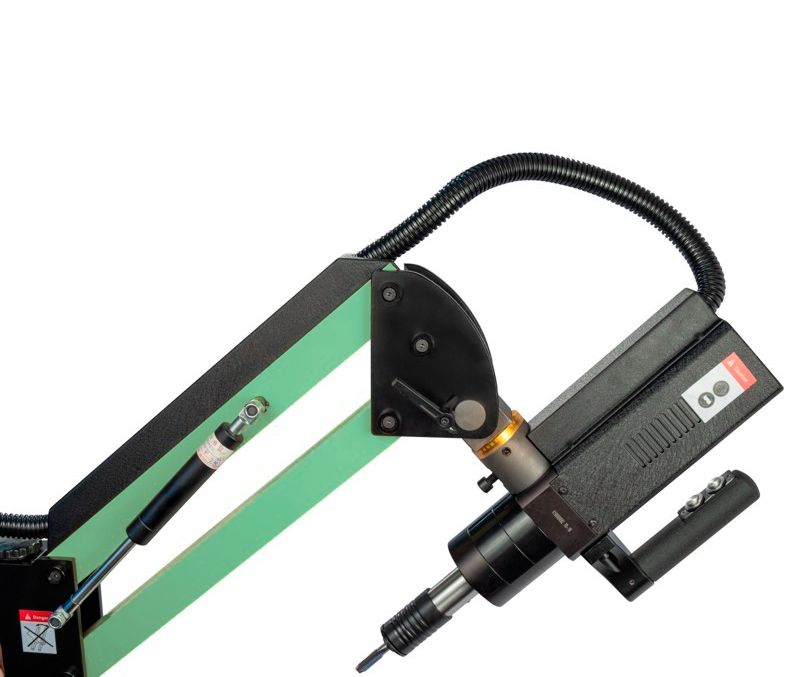 Электрический резьбонарезной манипулятор LG-DS48-U (Legao) используется нарезания резьбы в отверстиях сквозного и глухого типа. В основе работы манипулятора лежит технология Gosync c применением синхронного сервопривода с планетарным редуктором. В манипуляторе LG-DS48-U применяется поворотный шпиндель. В отличии от вертикального типа поворотный шпиндель значительно расширяет возможности обработки и позволяет нарезать резьбу под любым углом. Управление рабочими процессами осуществляется через интуитивно понятный интерфейс при помощи сенсорного экрана. Фиксация метчика в шпинделе осуществляется при помощи быстросменных цанг типа TC1433 c защитой от перегрузки и превышения крутящего момента.