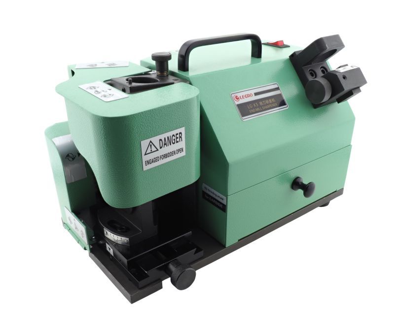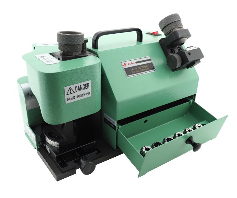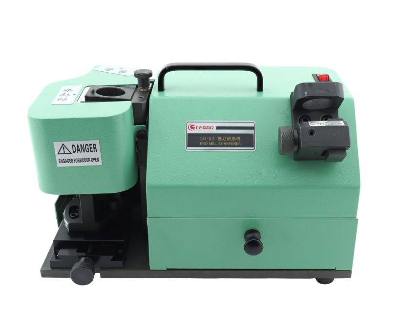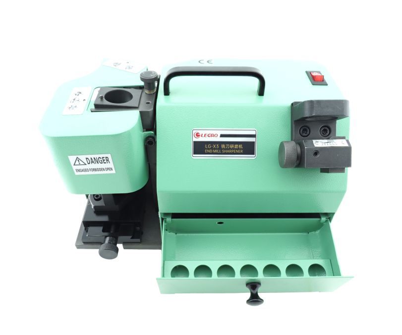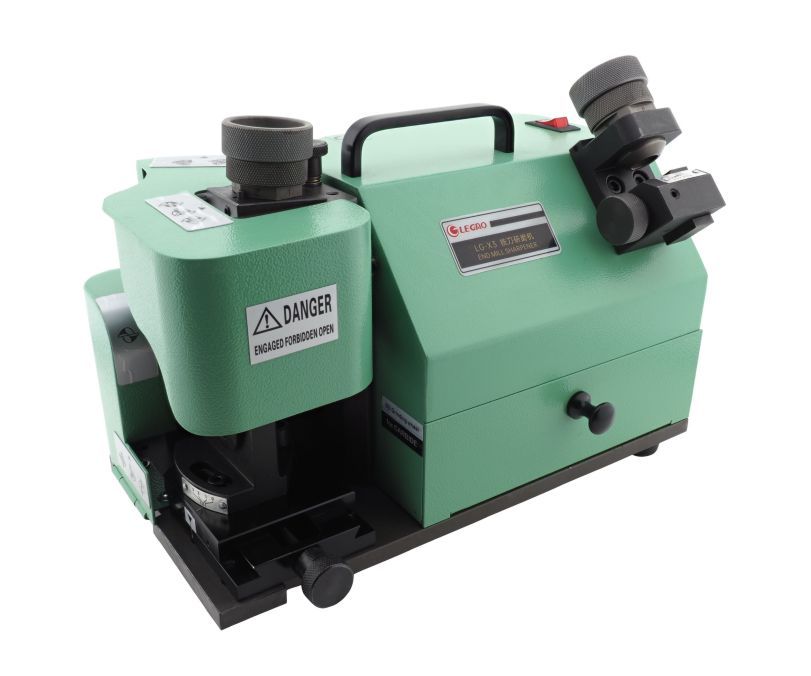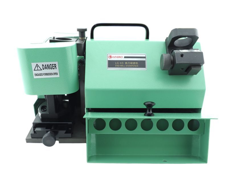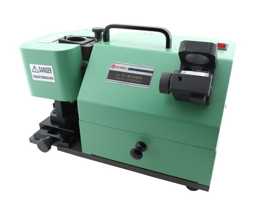 Станок LG-X3 с расширенным функционалом, используется для торцевой заточки двух-, трех-, четырехзубых концевых фрез диаметром от 4 до 14 мм, изготовленных из твердых сплавов и быстрорежущей стали HSS . Конструктивно представляет собой корпус с установочными отверстиями, внутри которого расположены электродвигатель и шлифовальный круг. В нижней части станка расположен контейнер для частиц абразива и металлической стружки.